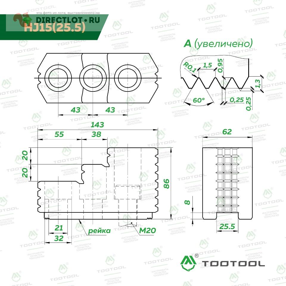 Универсальные каленые кулачки (прямые и обратные) HJ15(25,5) для гидравлического токарного патрона 15 дюймов c рейкой 1,5x60°.
