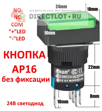 Код для вставки ссылки на эту страницу в сообщения на форумах: [url=https://directlot.ru/lot.php?id=1708518] Кнопка зелёная с подсветкой AP16J-11D, без фиксации, монтаж 16мм, светодиод 24В купить, объявление на DIRECTLOT.RU [/url]