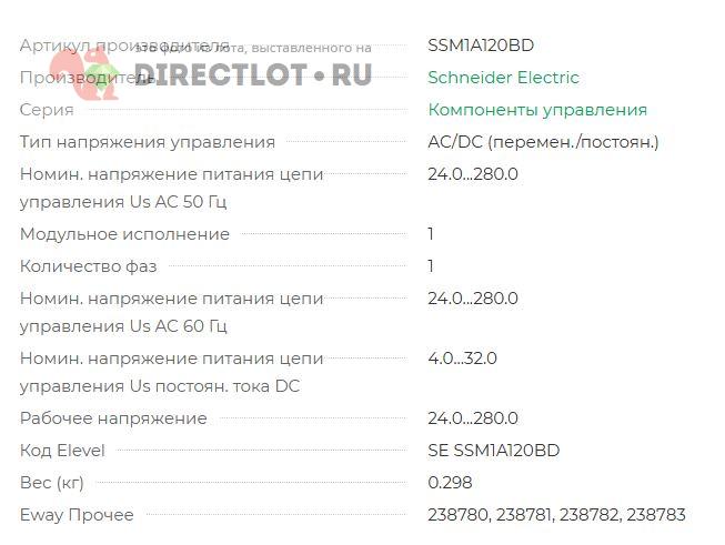 Код для вставки ссылки на эту страницу в сообщения на форумах: [url=https://directlot.ru/lot.php?id=1621915] Твердотельное реле 280В, 20А, 4-32В, арт. SSМ1А120ВD купить, объявление на DIRECTLOT.RU [/url]