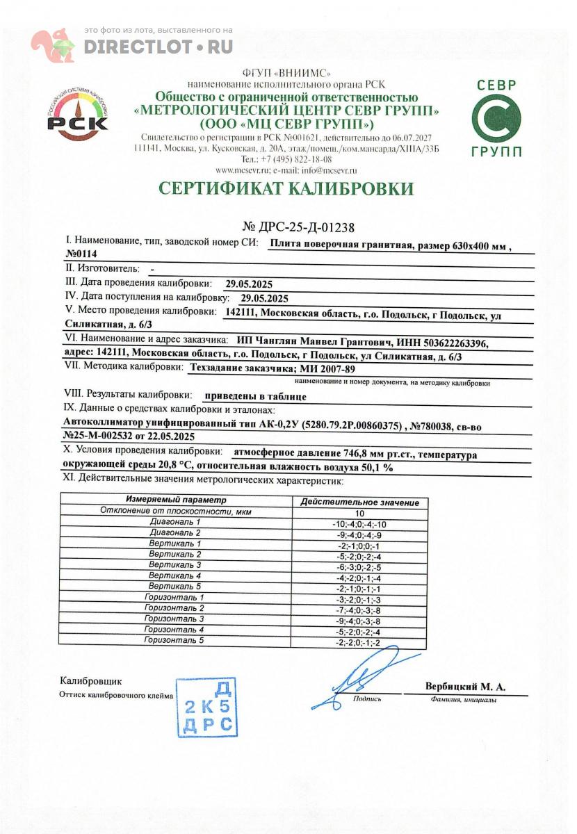 Код для вставки ссылки на эту страницу в сообщения на форумах: [url=https://directlot.ru/lot.php?id=1626241] Плита поверочная гранитная 630х400х100 мм №0114 Плоскостность: 10 мкм со стендом купить, объявление на DIRECTLOT.RU [/url]