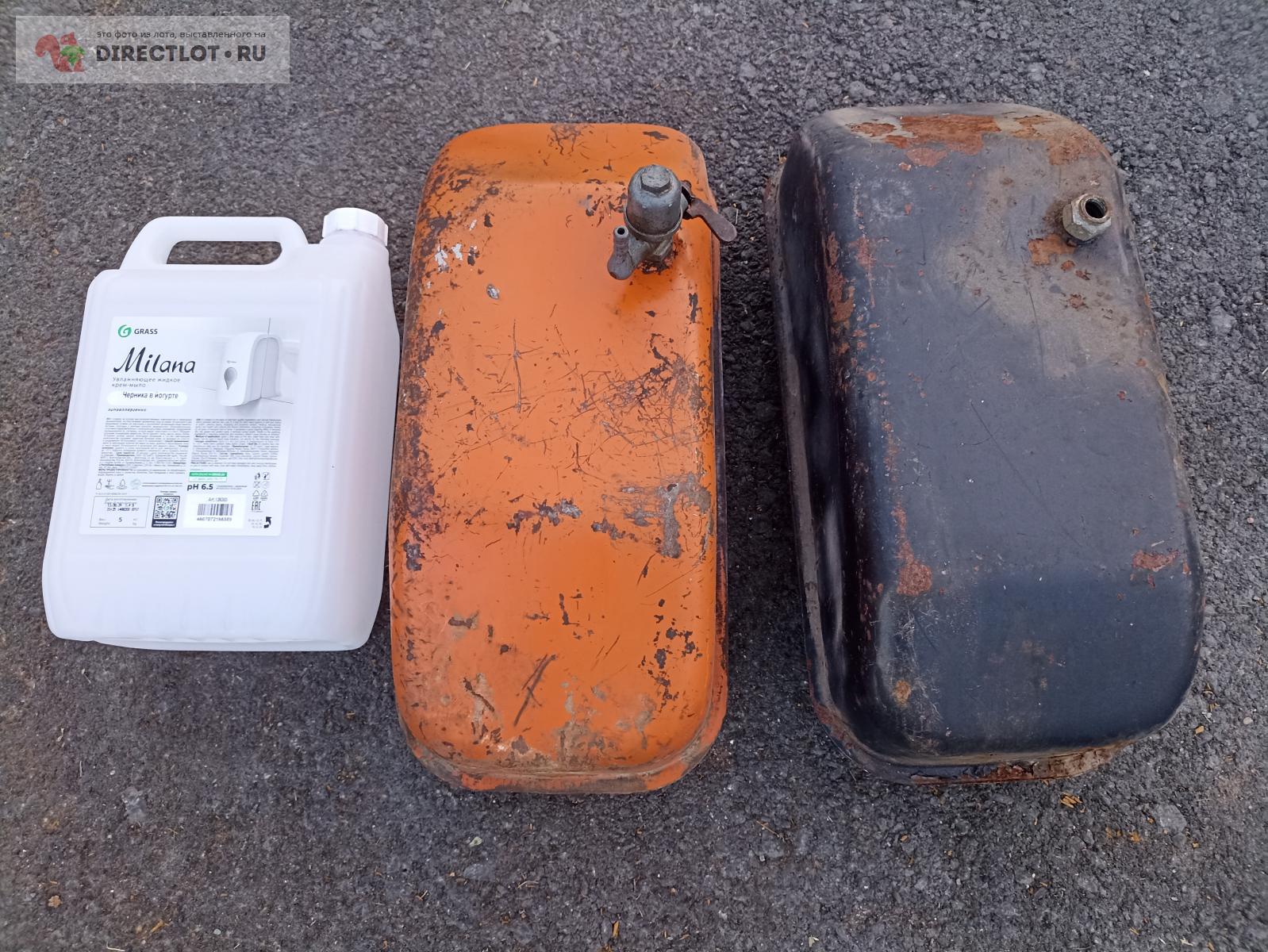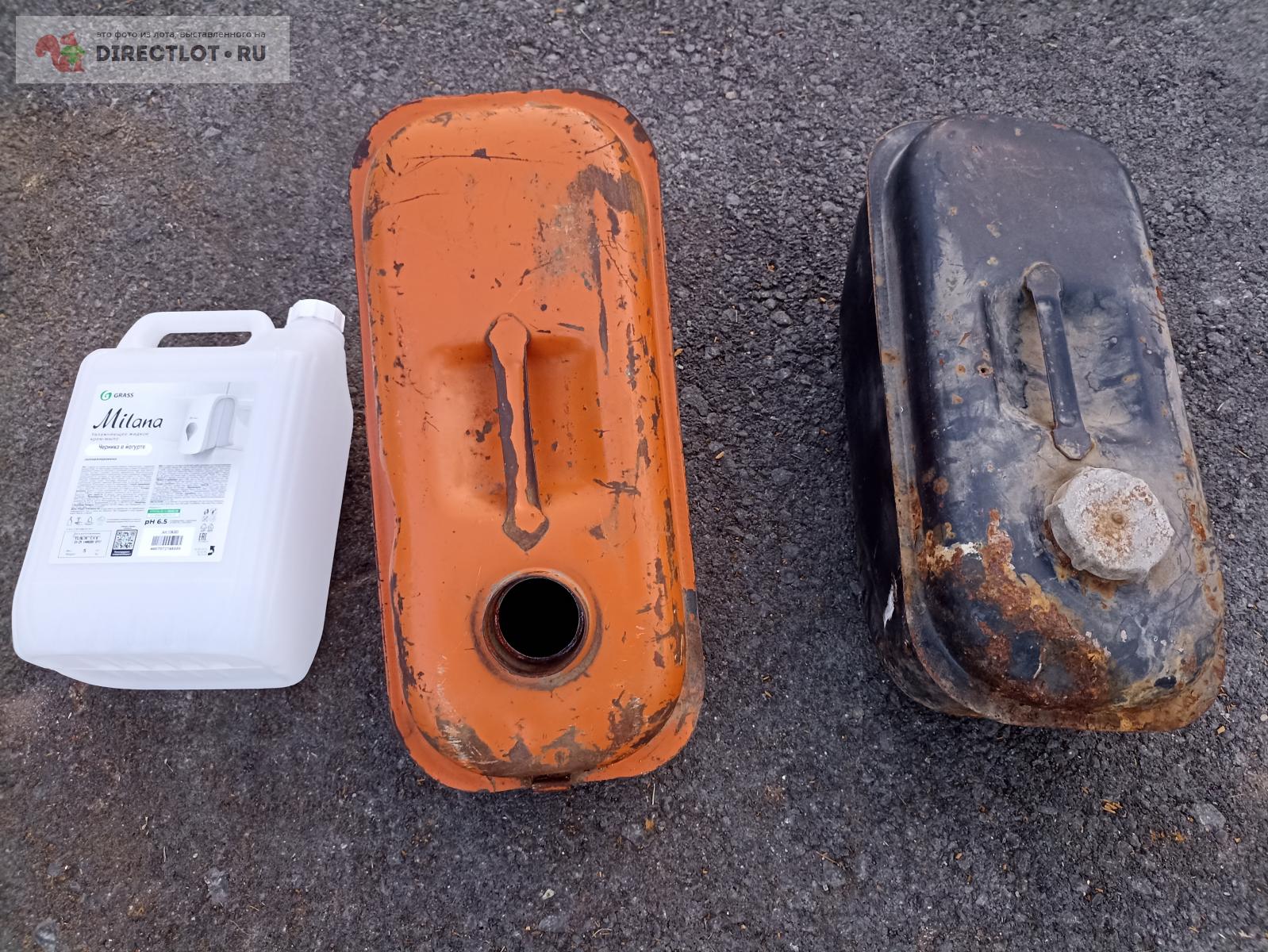 Вроде от мотороллера, но это не точно, визуально литров на 7-8, может и 10 влезет. Оранжевый с краником, но без крышки, черный крышкой, выбирайте. У черного сверху у ручки есть небольшое аккуратное отверстие. Если надо, могу покупателю полуавтоматом на это место каплю наварить, назначение сего мне не известно, может специально делали. Упакую в пупырку и гофрокартон, до ТК бесплатно, дальше за счет покупателя. пластиковая канистра для масштаба, в лот не входит.