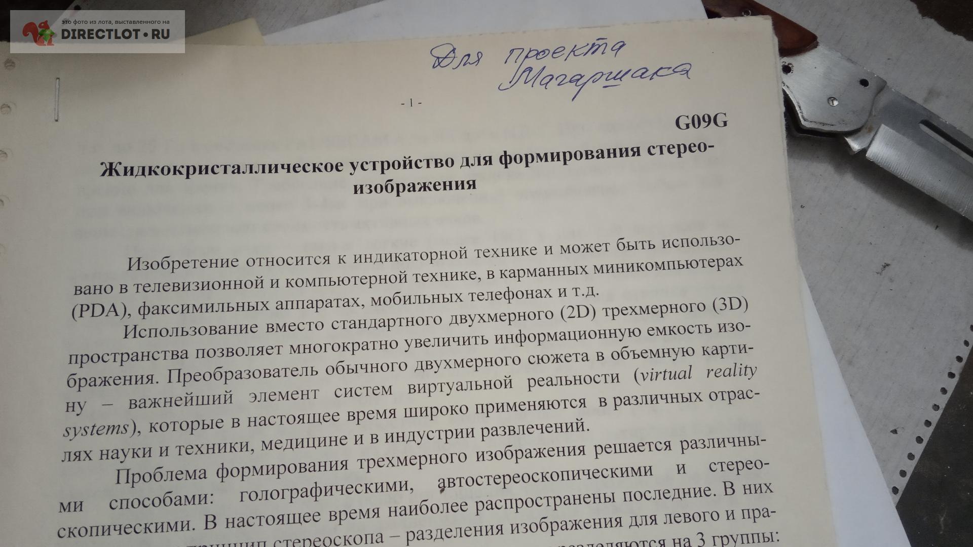 Код для вставки ссылки на эту страницу в сообщения на форумах: [url=https://directlot.ru/lot.php?id=1676385] Жидкокристаллическое устройство для формирования стерео изображения фотокопия купить, объявление на DIRECTLOT.RU [/url]