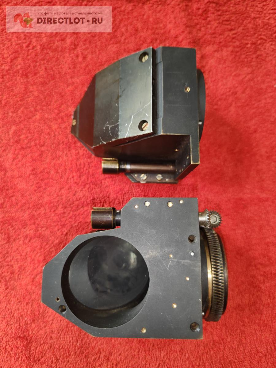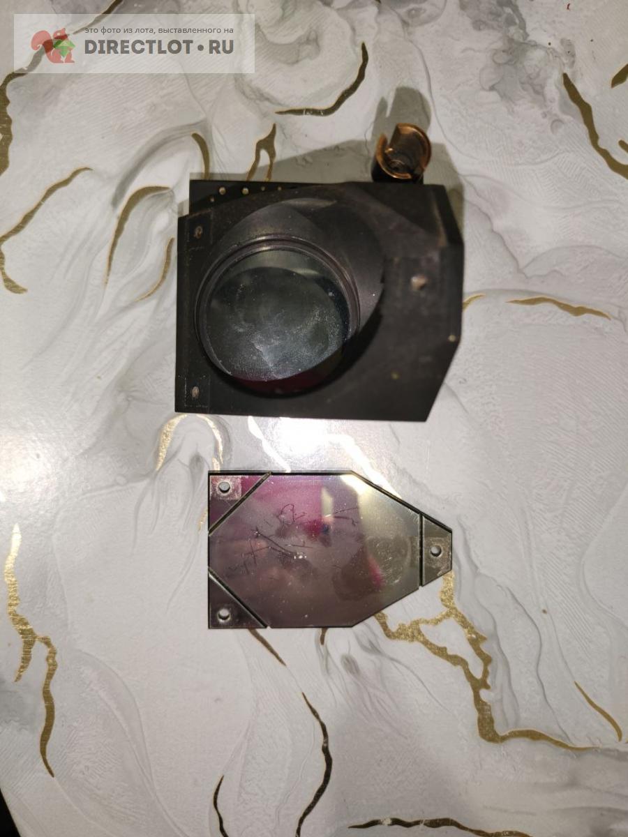 Зеркала диагональные в оправах, вероятно от какой-то лазерной установки. Само зеркало тонкое ситалловое или стеклянное, наклеенное на металл. В одной и оправ имеется поворотная втулка, вращаемая червяком через угловой редуктор. Во втулке неизвестный фильтр.