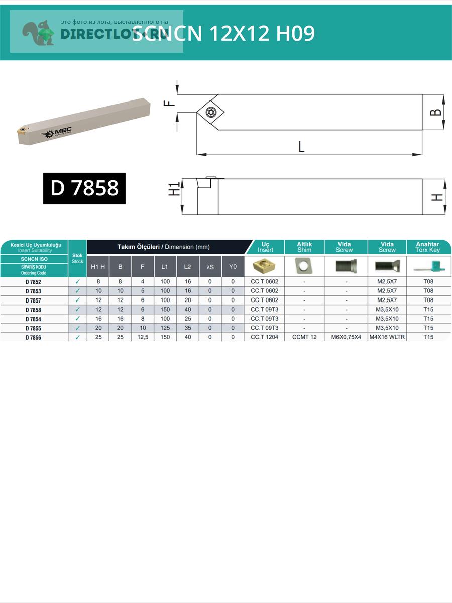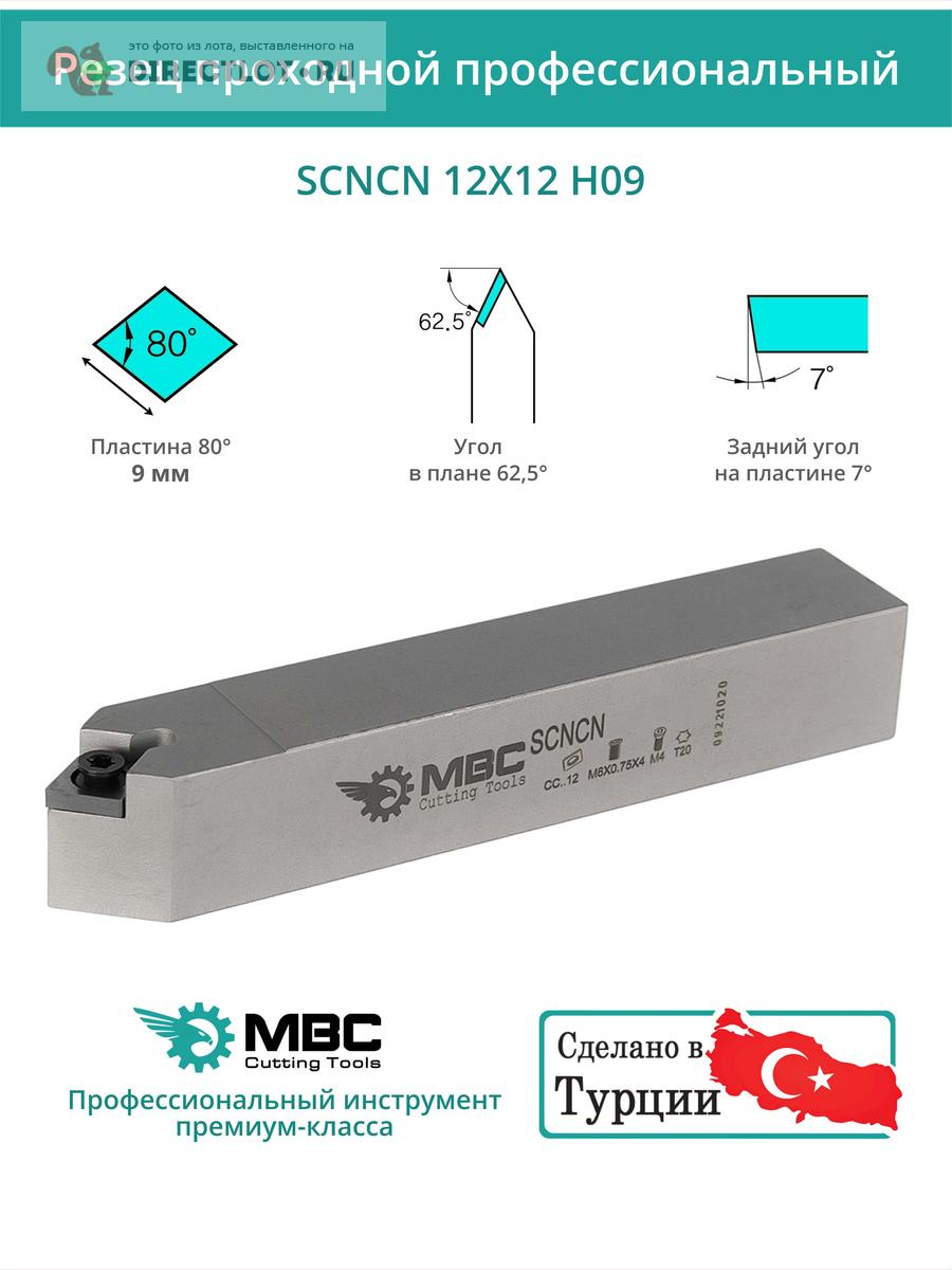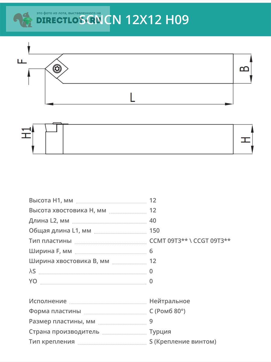 Характеристики проходной державки SCNCN 12X12 H09: