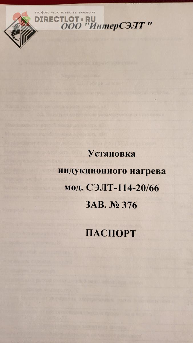 Код для вставки ссылки на эту страницу в сообщения на форумах: [url=https://directlot.ru/lot.php?id=1691803] Установка индукционного нагрева ТВЧ Интерсэлт СЭЛТ-114-20/66-Т, 40-70 кГц, 20 кВт, 2400 А купить, объявление на DIRECTLOT.RU [/url]