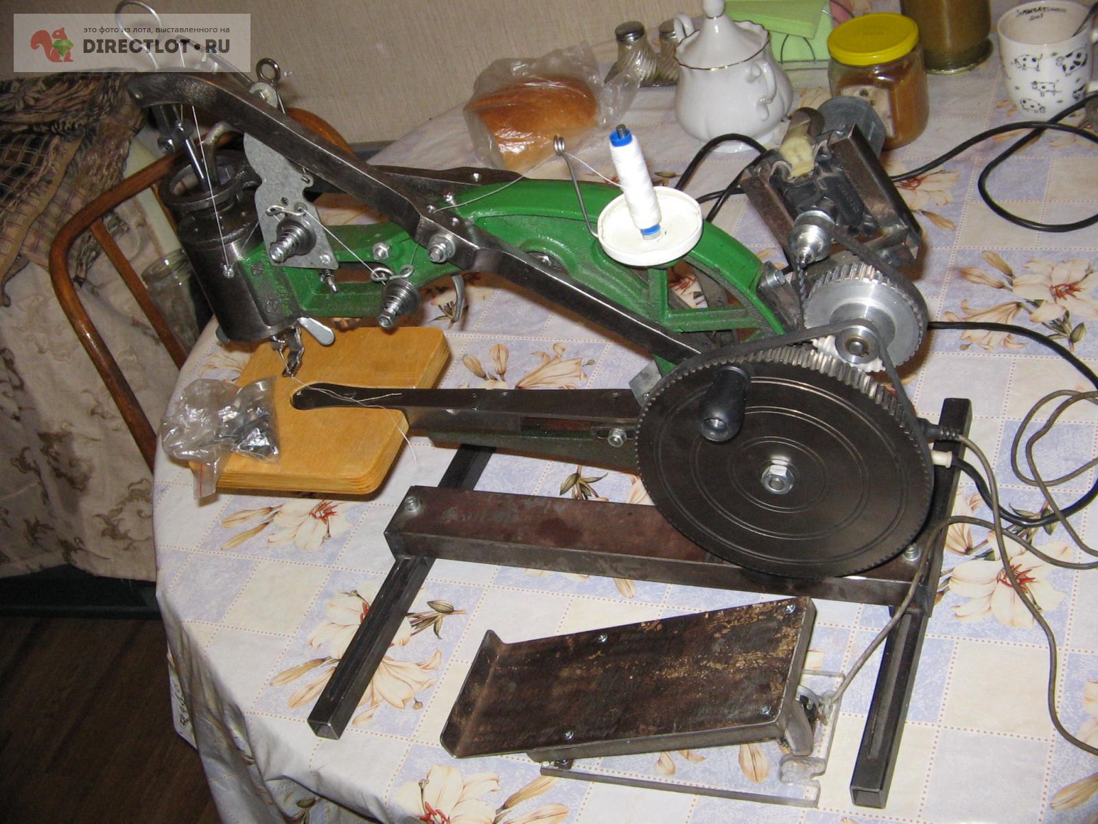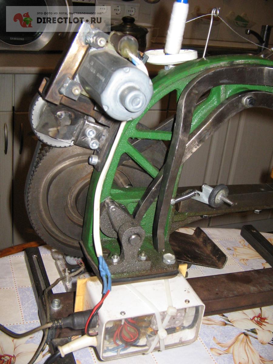 Чугунная, приведена в порядок, шьет и толстое и тонкое. Электропривод 220В с обгонной муфтой - не надо тратить силы и проворачивать мотор при вращении вручную. На мотор и педаль приходит 12В.