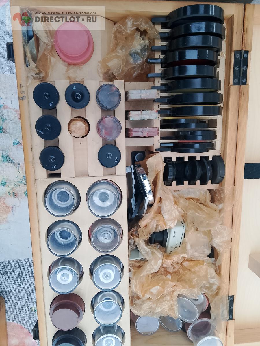 Про состояние и юстировку ничего не скажу, не разбираюсь. По крайне мере, до последнего был в работе, пользователь не жаловался. Комплектация (точнее то, что идет с ним в комплекте, н.п. окуляры, диафрагмы, микрофотонасадка МФН-11) показана на фото.