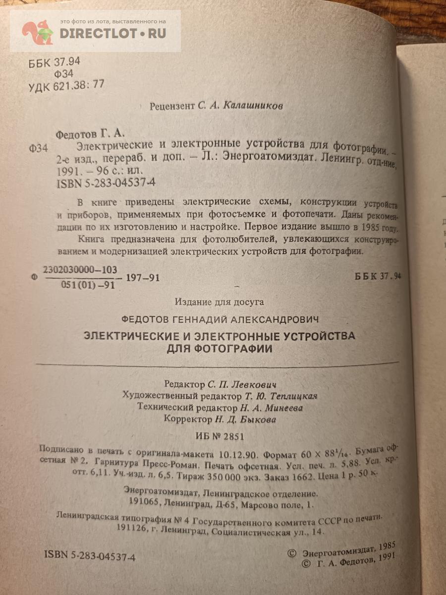 Бесплатное объявление 1695976 в рубрике Художественная литература и НаучПоп продам: Брошюра Электрические и электронные устройства для фотографии Г.А. Федотов купить в Самаре цена 300 руб. Объявление размещено пользователем «Dobrovich».