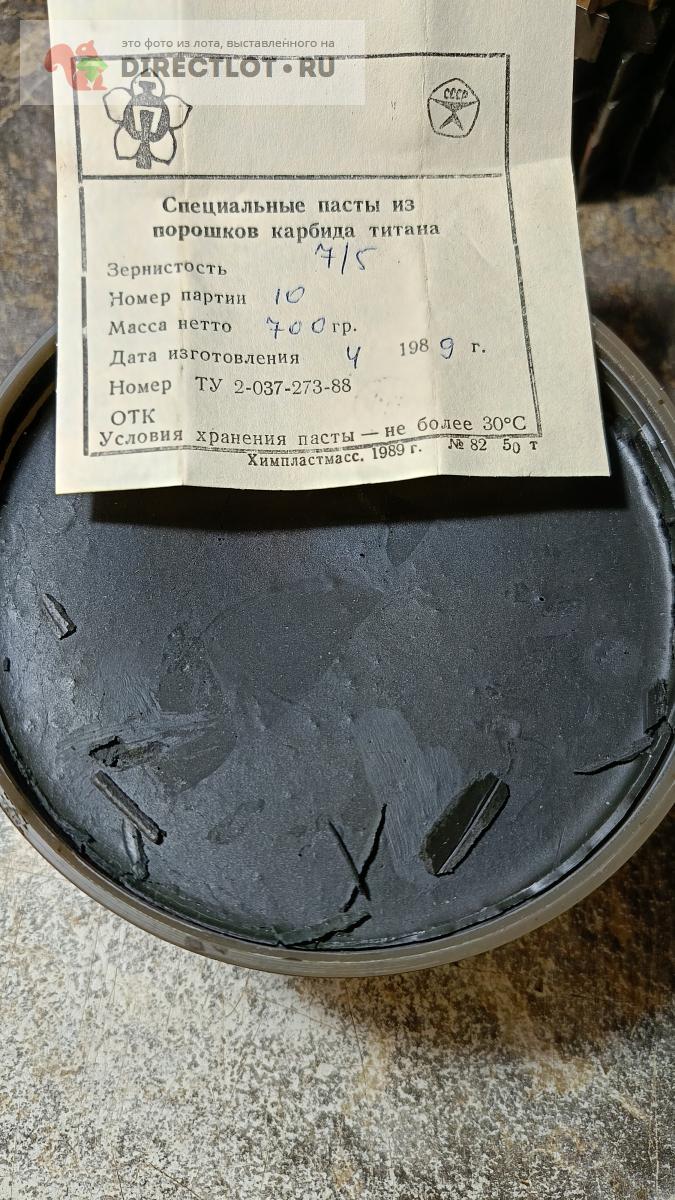 Код для вставки ссылки на эту страницу в сообщения на форумах: [url=https://directlot.ru/lot.php?id=1697458] паста из порошков карбида титана (зернистость 7/5) купить, объявление на DIRECTLOT.RU [/url]