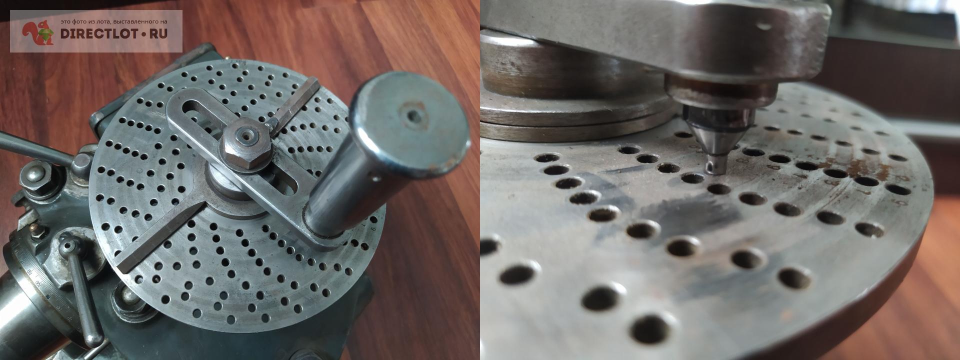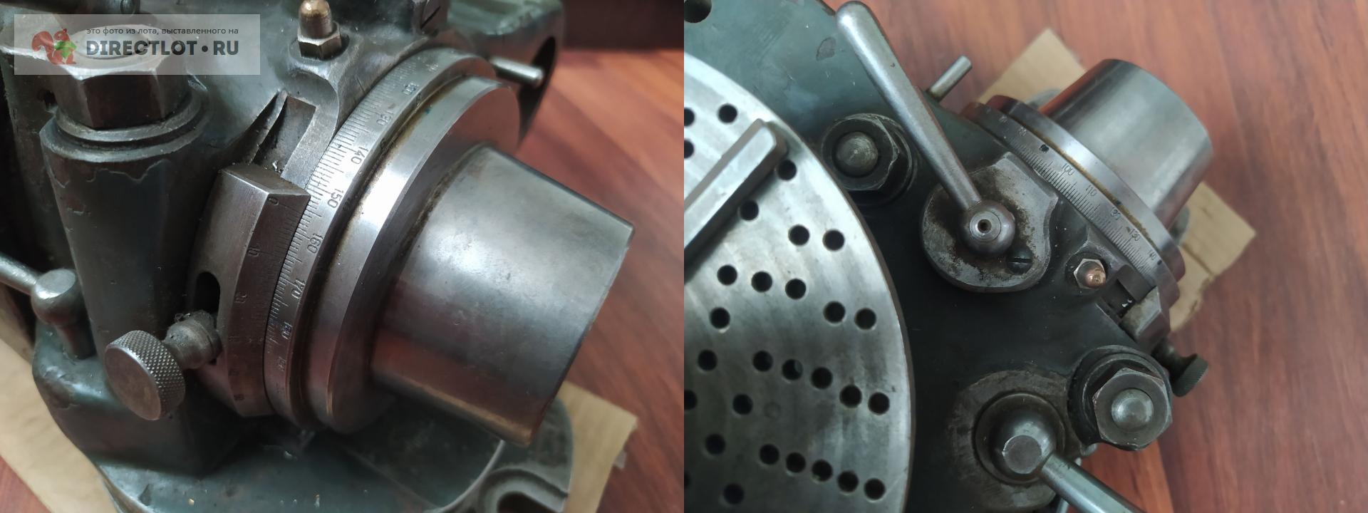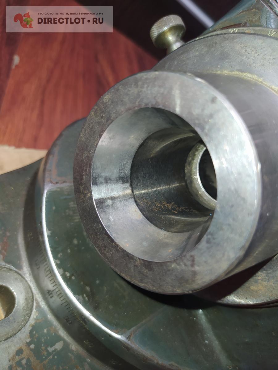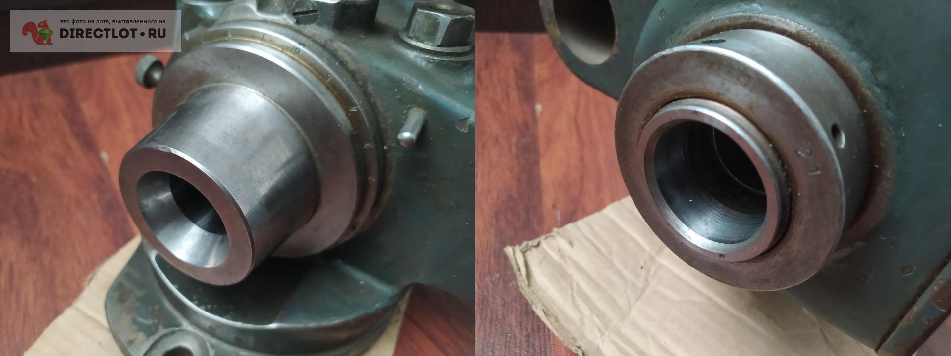 УДГ в отличном состоянии, вращается плавно и без усилия. Шпиндель под фирменные цанги, коническая часть ~ 43 на 34 мм, проходное отверстие в торце шпинделя сзади 38 мм. Ось шпинделя и пазы с установочными планками совпадают, сами планки под паз 14 мм. Т.к. делительный диск сверху можно работать и слева направо и справа налево. Если не ошибаюсь, стандартно токарный патрон ставился на оправке, которая базировалась на внешнем конусе шпинделя. Вес около 32 кг, желательна жесткая упаковка в ТК. Последнее фото - пример как такая головка выглядит с патроном и центром. В комплекте ничего нет, только сама головка. Немного фантазии и наличие токарного станка решат данную проблему. Цанги, кстати, продаются на directlot.