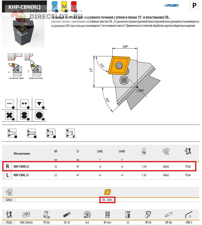 Код для вставки ссылки на эту страницу в сообщения на форумах: [url=https://directlot.ru/lot.php?id=1719874] Сменная головка для наружного точения с углом в плане 75° KHP-CBNR 25 (PRAMET) купить, объявление на DIRECTLOT.RU [/url]