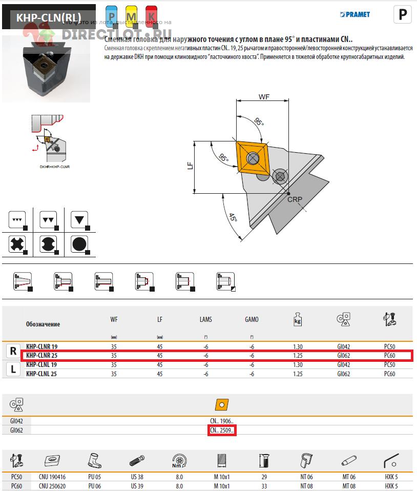 Код для вставки ссылки на эту страницу в сообщения на форумах: [url=https://directlot.ru/lot.php?id=1720257] Сменная головка для наружного точения с углом в плане 95° KHP-CLNR 25 (PRAMET) купить, объявление на DIRECTLOT.RU [/url]