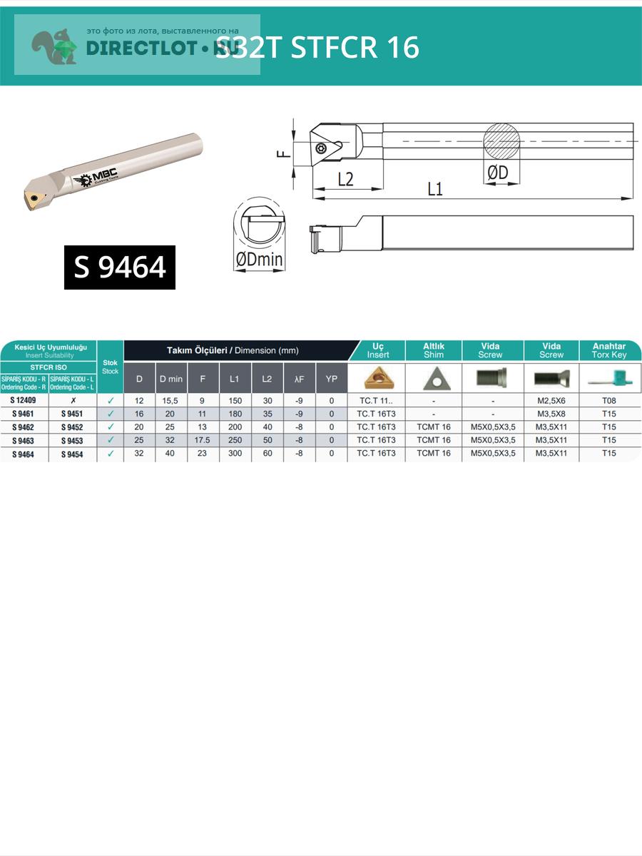 S32T STFCR 16 внутренний токарный расточной резец правый, 32 мм / пластина TCMT 16T3** купить