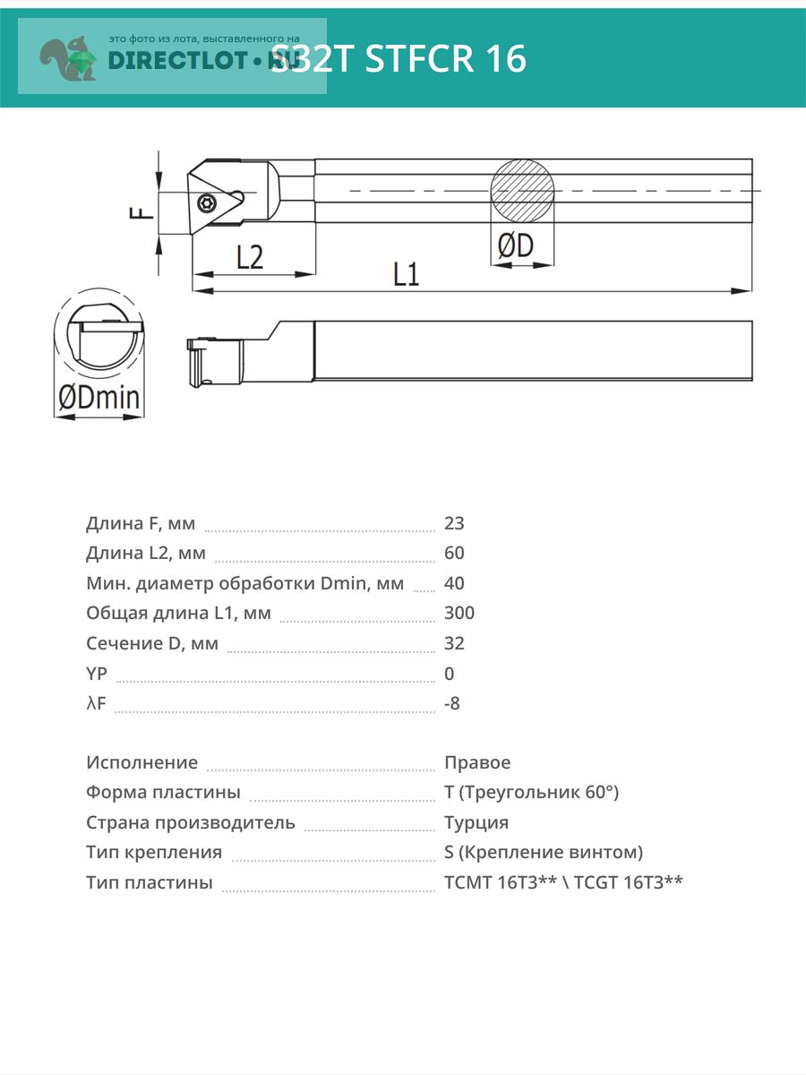 Характеристики державки S32T STFCR 16