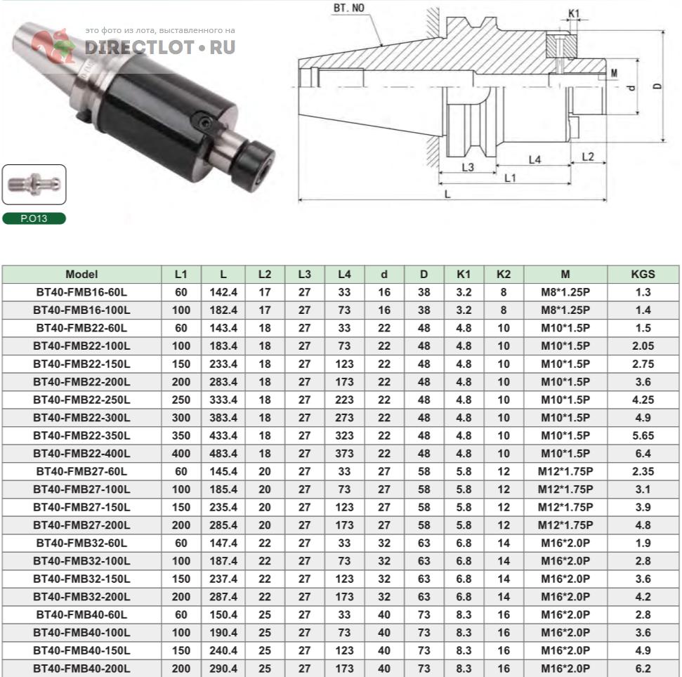 Тип хвостовика: BT40