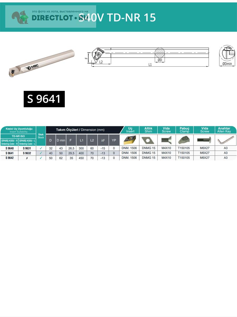 S40V TD-NR 15 внутренний токарный расточной резец правый, 40 мм / пластина DNMG 1506** купить