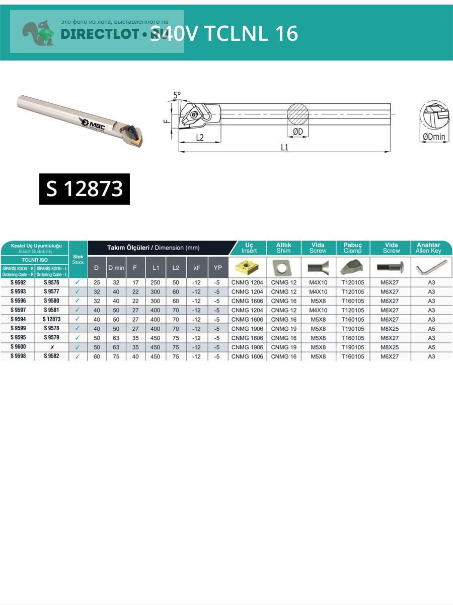 Характеристики державки S40V TCLNL 16