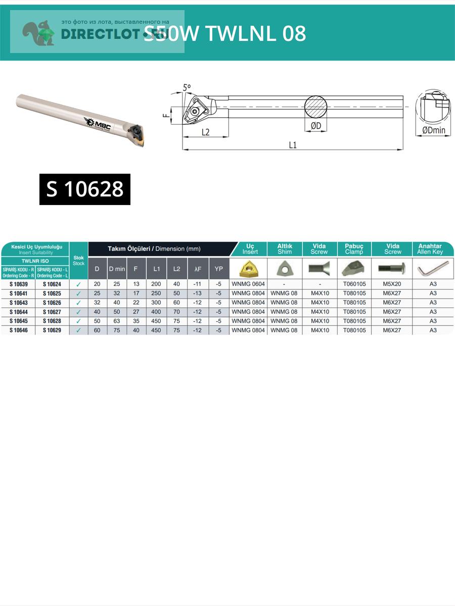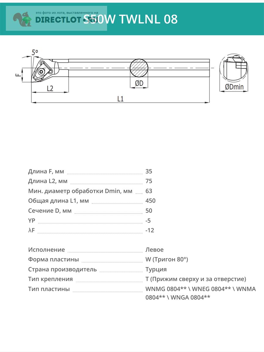 Характеристики державки S50W TWLNL 08