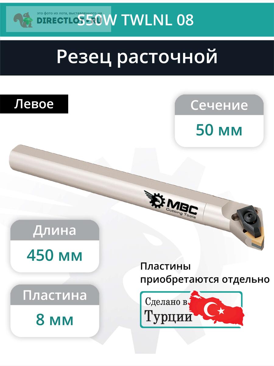 Профессиональная токарная державка (резец) S50W TWLNL 08 расточная внутренняя, левая. Державка предназначена для работы с пластинами следующего типа: WNMG 0804** \ WNEG 0804** \ WNMA 0804** \ WNGA 0804**. Используется для выполнения операций по обработке внутренних поверхностей деталей, таких как растачивание отверстий, снятие фасок и подрезка торцов и т.п. Подходит для точной и эффективной обработки материалов на станках с ЧПУ и универсальных токарных станках. Державка имеет сечение 50 мм и длину 450 мм.
