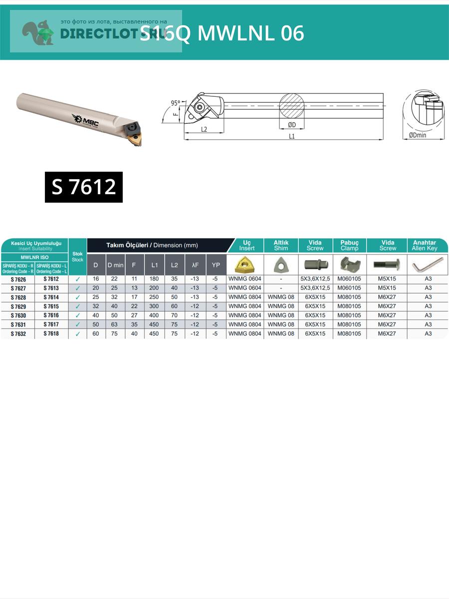S16Q MWLNL 06 внутренний токарный расточной резец левый, 16 мм / пластина WNMG 0604** купить