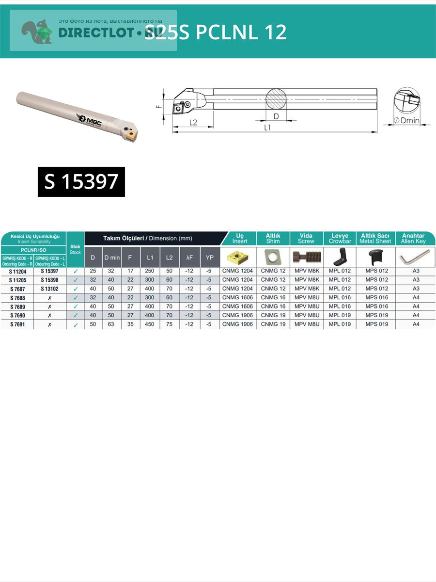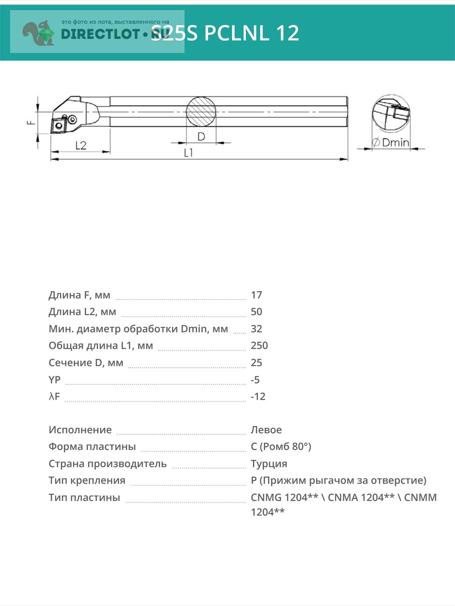 S25S PCLNL 12 внутренний токарный расточной резец левый, 25 мм / пластина CNMG 1204** купить