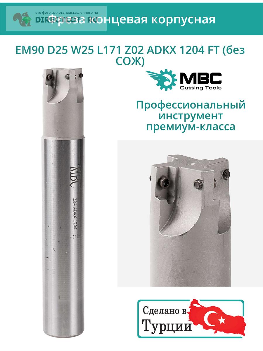 Профессиональная корпусная концевая фреза EM90 D25 W25 L171 Z02 ADKX 1204 FT без подвода СОЖ для фрезерного станка, используется с пластинами следующего типа: ADKX 1204. Общая длина фрезы 171 мм, диаметр 25 мм, 2 зуба.