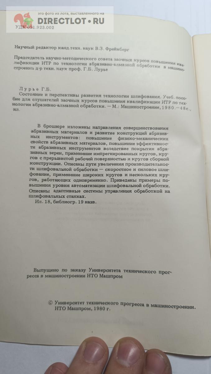 Код для вставки ссылки на эту страницу в сообщения на форумах: [url=https://directlot.ru/lot.php?id=1745968] Состояние и перспективы развития технологии шлифования купить, объявление на DIRECTLOT.RU [/url]