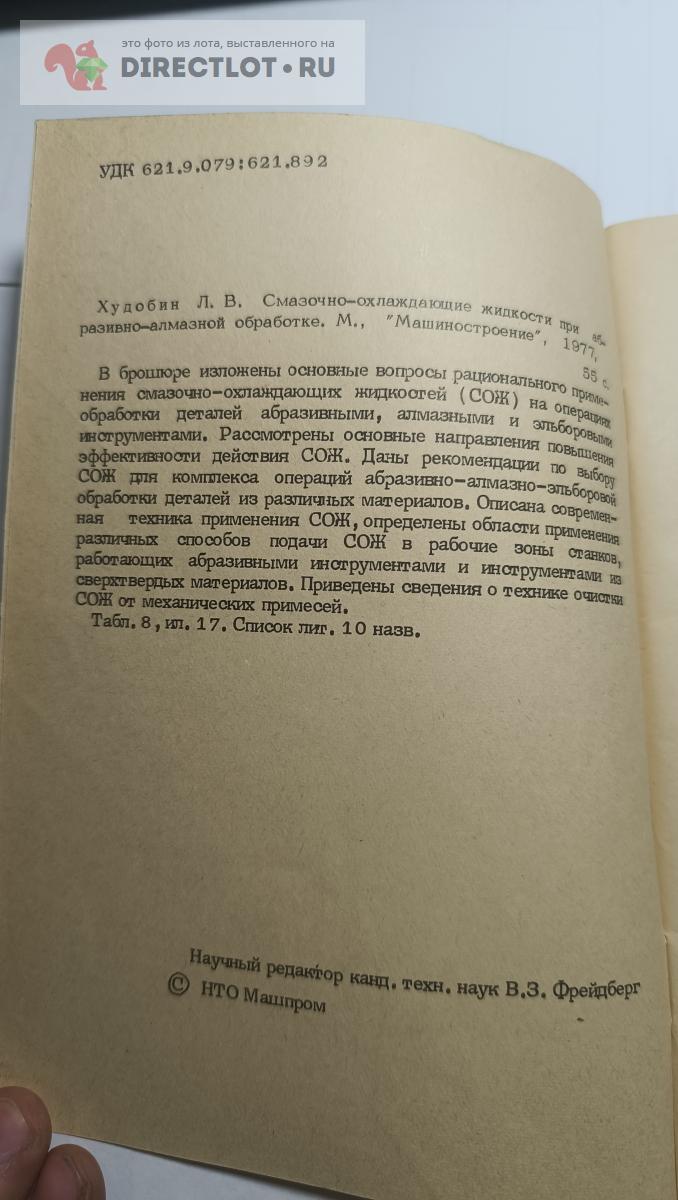 Бесплатное объявление 1745982 в рубрике Книги по теме работы с металлом и материалами продам: Смазочно-охлаждающие жидкости при абразивно-алмазной обработке купить в Новосибирске цена 200 руб. Объявление размещено пользователем «АлександрNN».