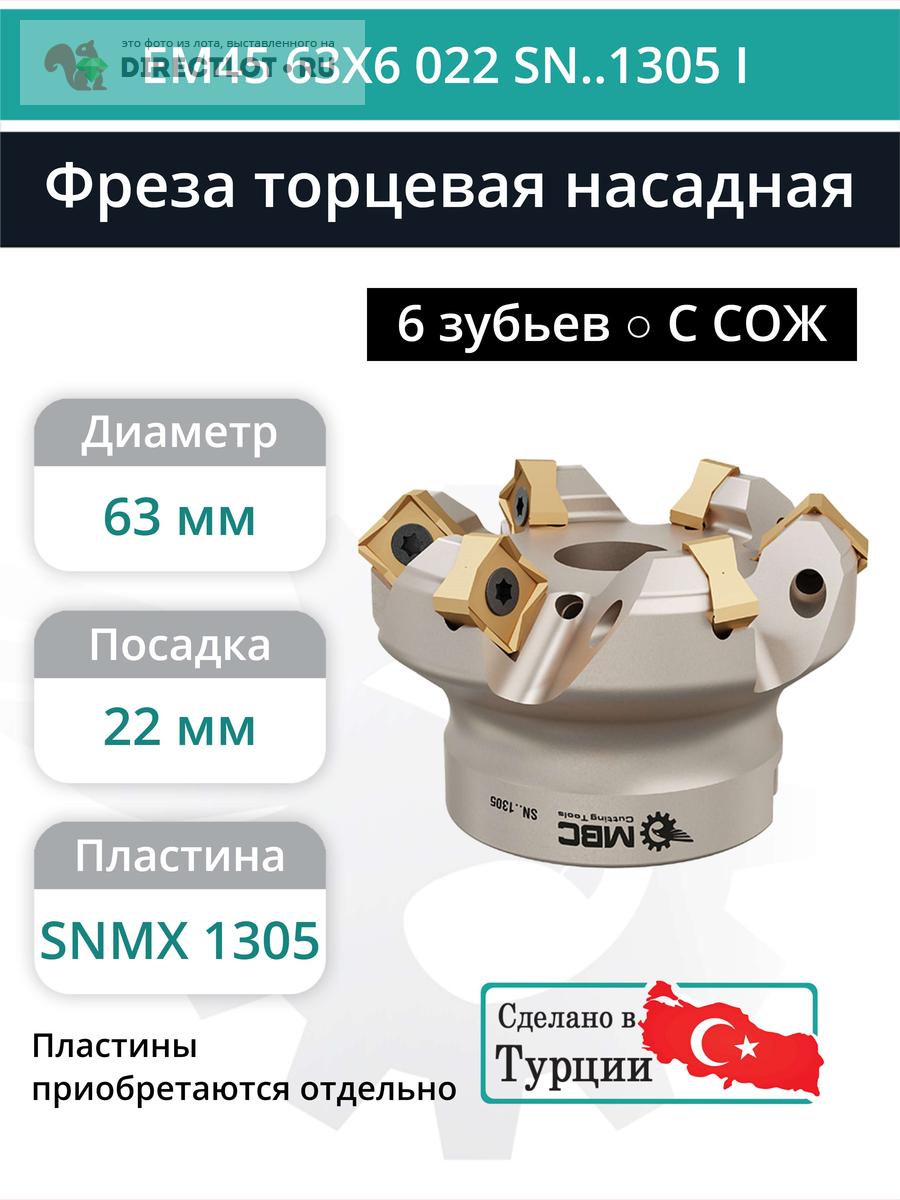 Фреза торцевая насадная 63 мм, посадка 22 мм, 6 зубьев EM45 63X6 022 SN..1305 I (с СОЖ) купить