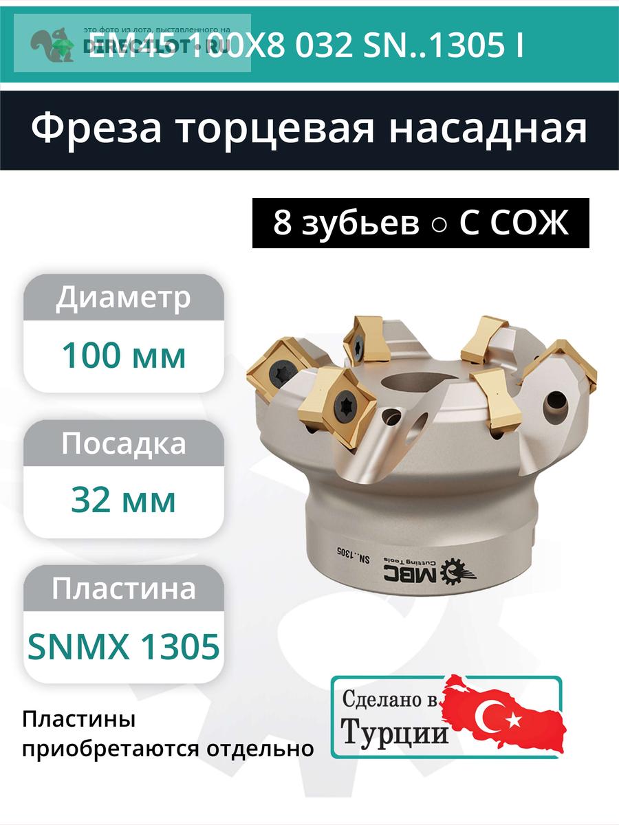 Фреза торцевая насадная 100 мм, посадка 32 мм, 8 зубьев EM45 100X8 032 SN..1305 I (с СОЖ) купить