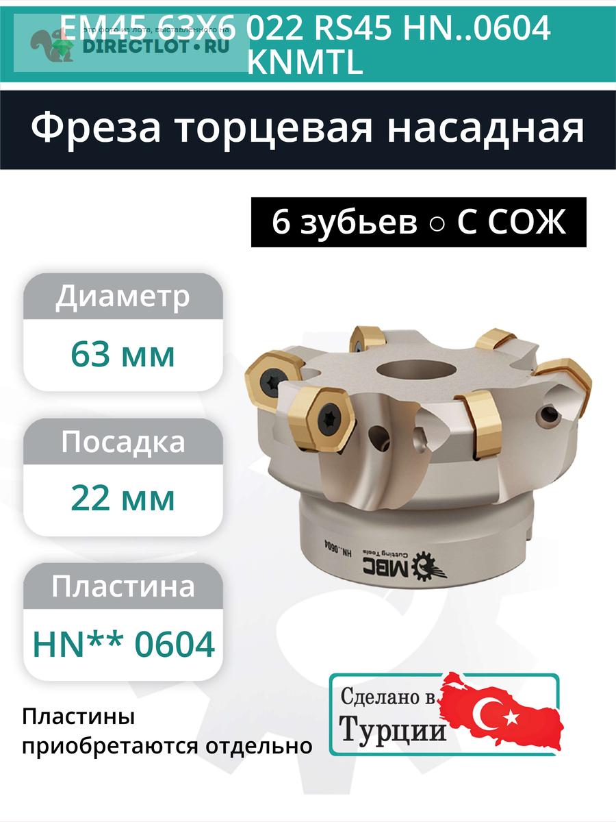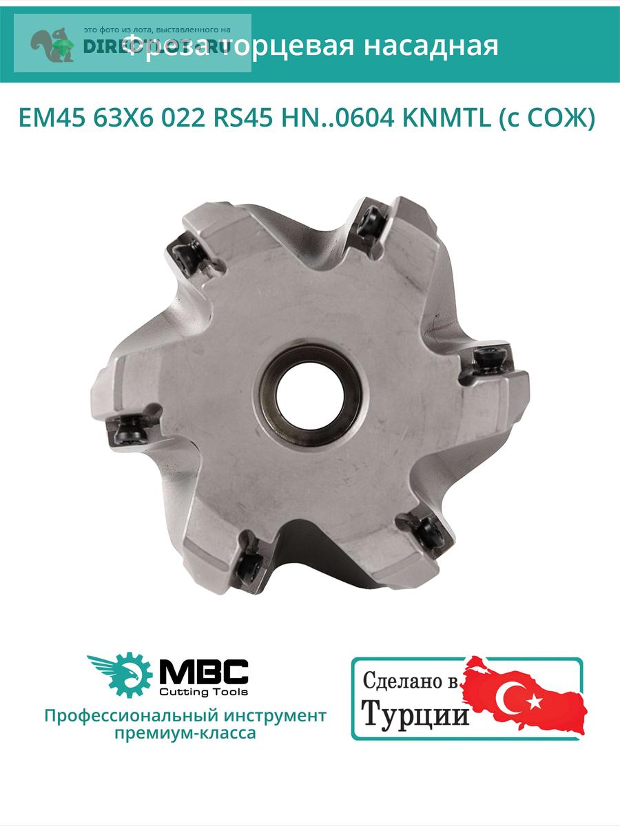 Фреза торцевая насадная 63 мм, посадка 22 мм, 6 зубьев EM45 63X6 022 RS45 HN..0604 KNMTL (с СОЖ) купить
