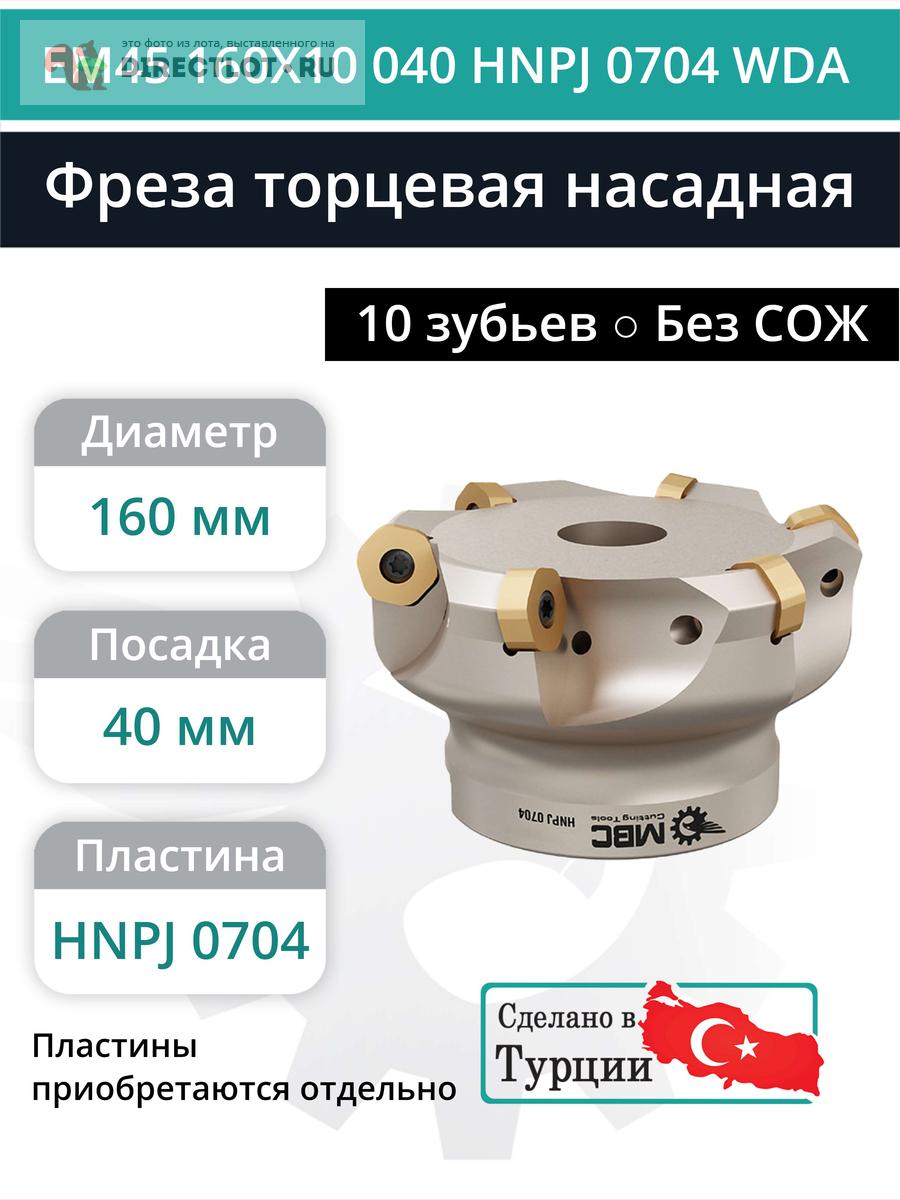 Фреза торцевая насадная 160 мм, посадка 40 мм, 10 зубьев EM45 160X10 040 HNPJ 0704 WDA (без СОЖ) купить