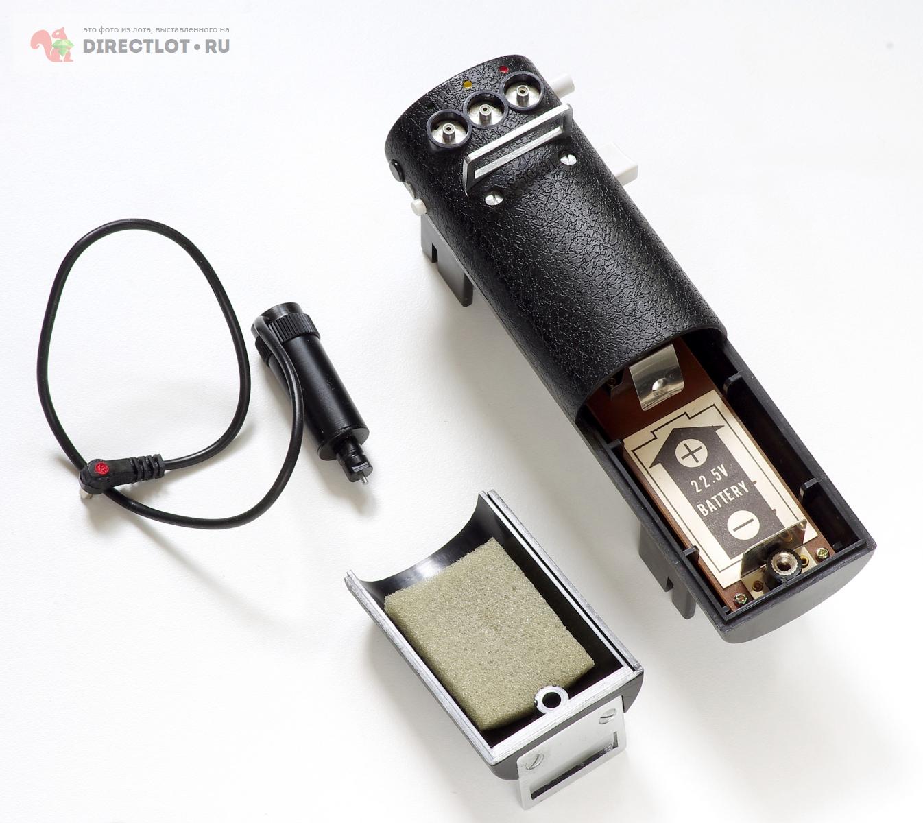 Очень интересная рукоятка в полном комплекте с соленоидом и кабелем для дистанционного спуска затвора в отличном состоянии. Внутри рукоятки имеется электрическая схема, которая при нажатии на спусковую кнопку на рукоятке подает импульс по проводу на соленоид, установленный в сухарик на объективной плате и шток соленоида нажимает на рычаг спуска затвора объектива. Можно подключить к рукоятке трехметровый кабель с кнопкой и производить спуск дистанционно. Можно не запитывать электрику и использовать рукоятку по прямому назначению, комфортность работы фотокамерами Horseman Press, 760, 970, 980, 985, VH и VH-R значительно улучшается. Рукоятку можно ставить, как справа, так и слева. Механизм крепления рукоятки просто шедевральный: достаточно одной секунды для установки, имеется надёжная винтовая блокировка от случайного отсоединения, снимается ручка также быстро. Питание схемы осуществляется от батарейки 22,5В, такие сейчас не выпускаются, но при желании можно сделать сборку из современных элементов питания, когда-то давно я такую рукоятку продавал и покупатель просил её опробовать, я собрал батарейку и запустил рукоятку, всё работало, но неизбежная вибрация от соленоида при спуске затвора весьма приличная и нужен хороший штатив, чтобы её погасить, поэтому рукоятка, скорее всего, представляет коллекционный, а не практический интерес. Данная рукоятка с питанием не проверена и продается без претензий.