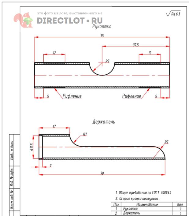 Рифления и проточку делать не нужно. Необходимо изготовить 500 комплектов. Материал исполнителя. |