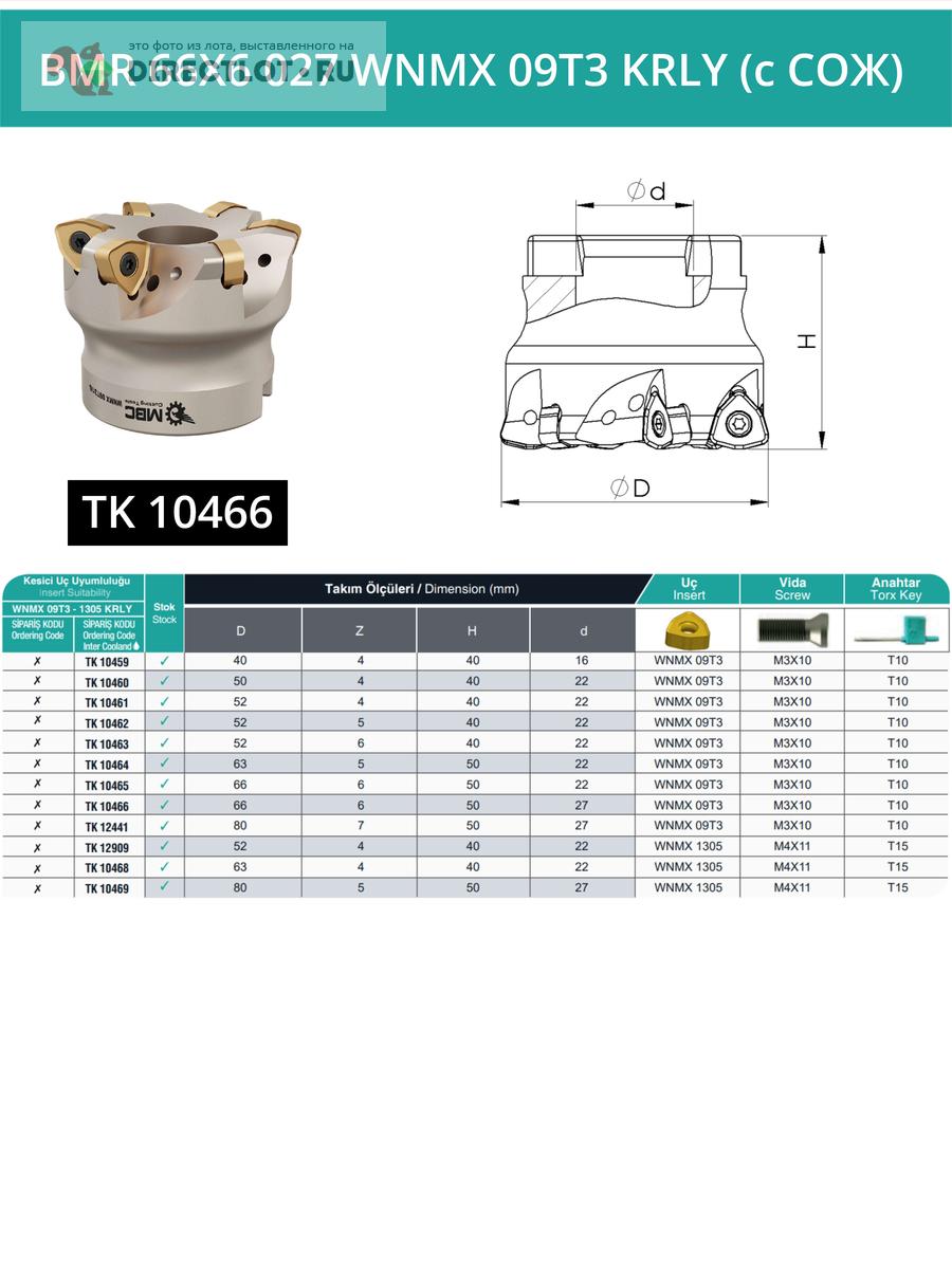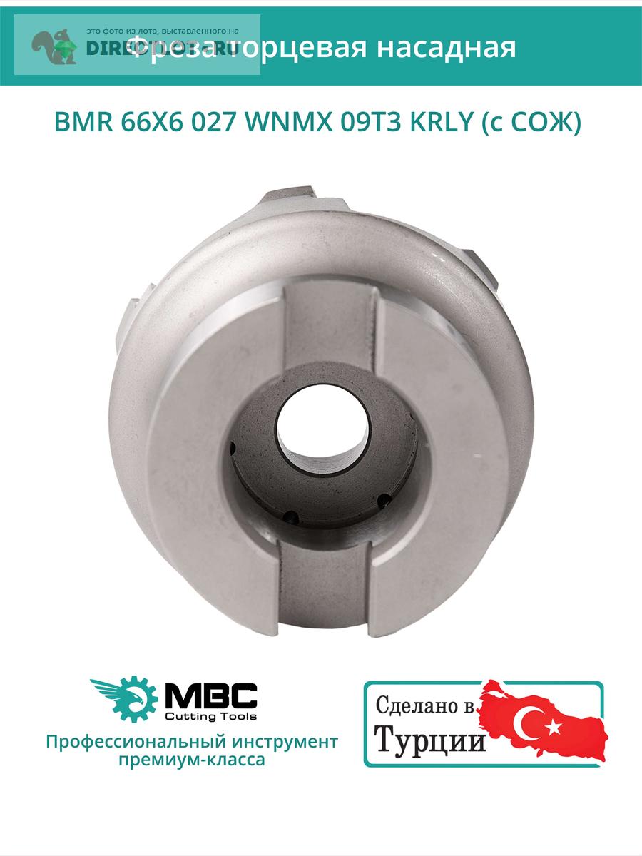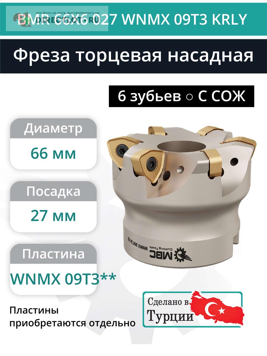 Профессиональная торцевая насадная фреза (совместима с KORLOY), BMR 66X6 027 WNMX 09T3 KRLY с отверстием под СОЖ для фрезерного станка, используется с пластинами типа: WNMX 09T3**. Фреза HIGH-FEED. Диаметр фрезы 66 мм, диаметр посадки 27 мм, количество зубьев 6 шт.