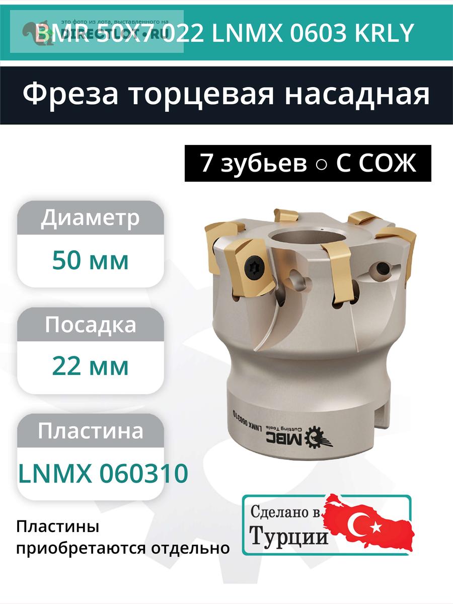 Бесплатное объявление 1748841 в рубрике Инструмент Фрезерный (фрезы, головки) продам: Фреза торцевая насадная 50 мм, посадка 22 мм, 7 зубьев BMR 50X7 022 LNMX 0603 KRLY (с СОЖ) купить в Нижнем Новгороде цена 7839 руб. Объявление размещено пользователем «MBC CUTTING TOOLS».
