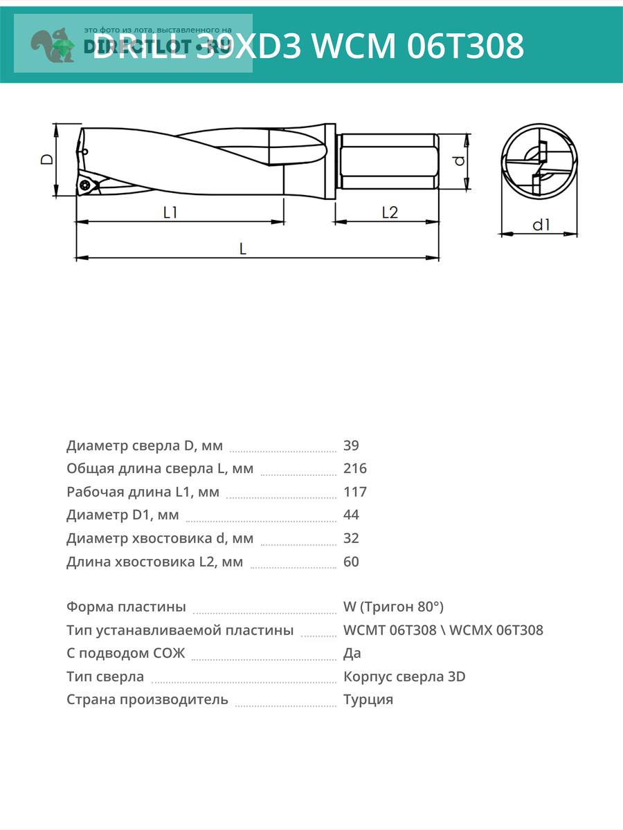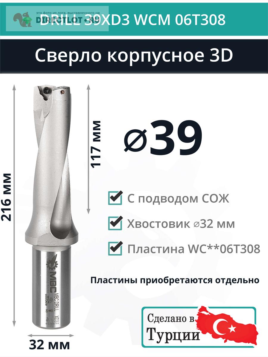 DRILL 39XD3 WCM 06T308 сверло корпусное - 39 мм / пластина WCMT 06T308; WCMX 06T308 купить