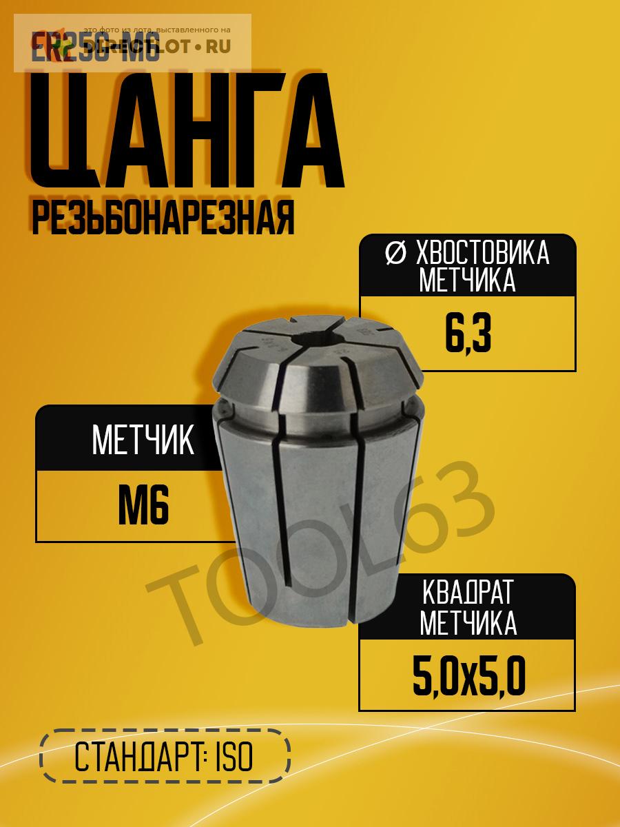 Резьбонарезная цанга ER25G-M6 ISO, D хвост. метчика : 6,3мм, Сечение квадрата метчика: 5,0*5,0мм купить