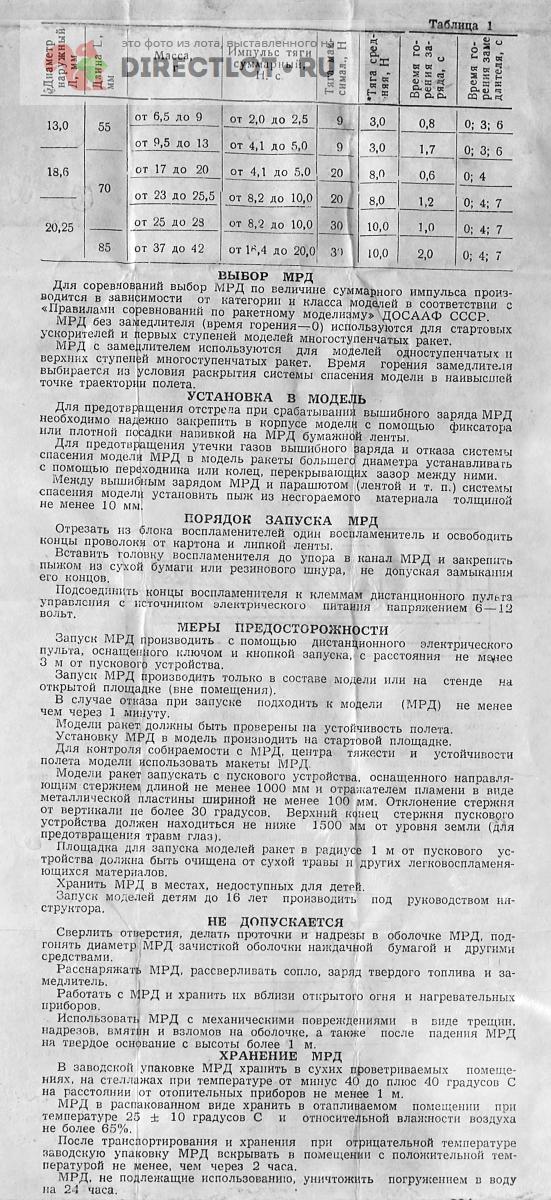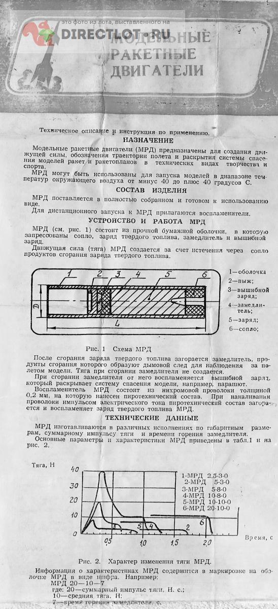 Второй по мощности ракетный двигатель из выпускавшихся в СССР для моделей ракет и ракетопланов. Диаметр 20 мм, длина 85 мм, двигатель оснащен замедлителем и зарядом для выброса парашюта. Интересный вид технического моделирования, раньше был руководителем ракетомодельного кружка и могу проконсультировать. Бережное домашнее хранение, изготовлен в 1990 году, цена указана за один двигатель, в наличии несколько штук, без запалов, коробка показана для информации. При заказе 10 двигателей коробка в подарок.