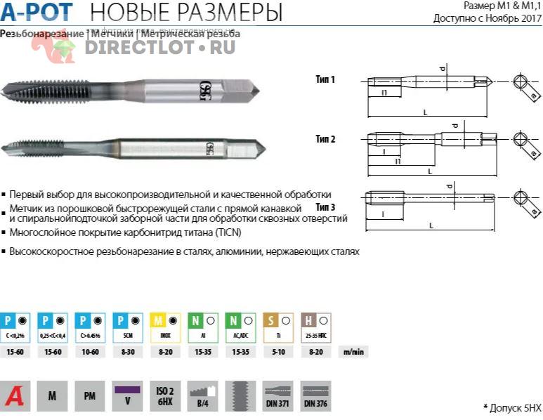 Бесплатное объявление 1753792 в рубрике Инструмент Резьбонарезной (метчики, плашки) продам: Метчик М12x1.25 для сквозных отверстий A-POT 48145181 OSG купить в Санкт-Петербурге цена 4900 руб. Объявление размещено пользователем «Гелинген».