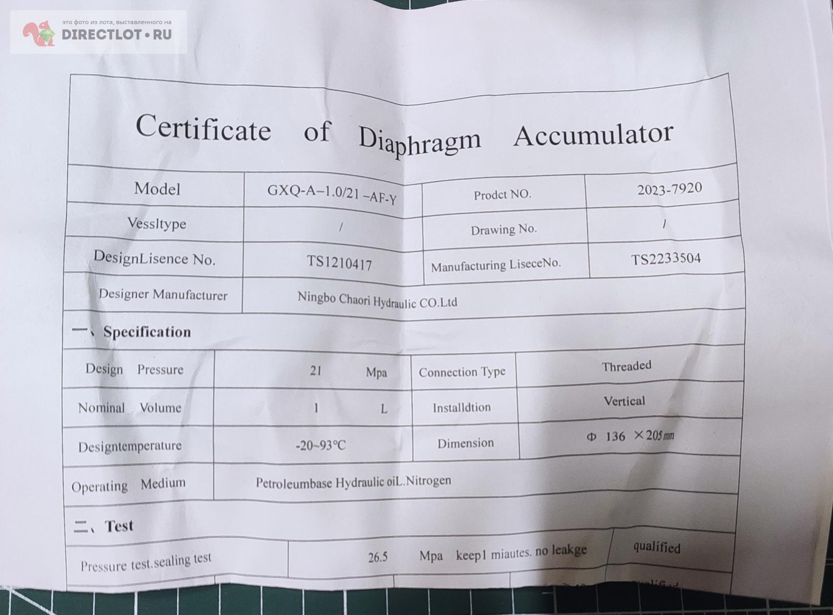 Код для вставки ссылки на эту страницу в сообщения на форумах: [url=https://directlot.ru/lot.php?id=1755289] Мембранный гидроаккаулятор GXQ-A-1.0/21-AF-Y купить, объявление на DIRECTLOT.RU [/url]