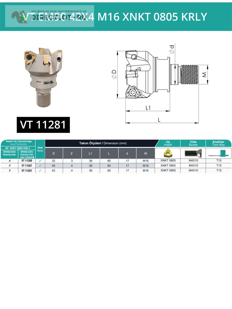 Маркировка: VT EM90 42X4 M16 XNKT 0805 KRLY (с СОЖ)