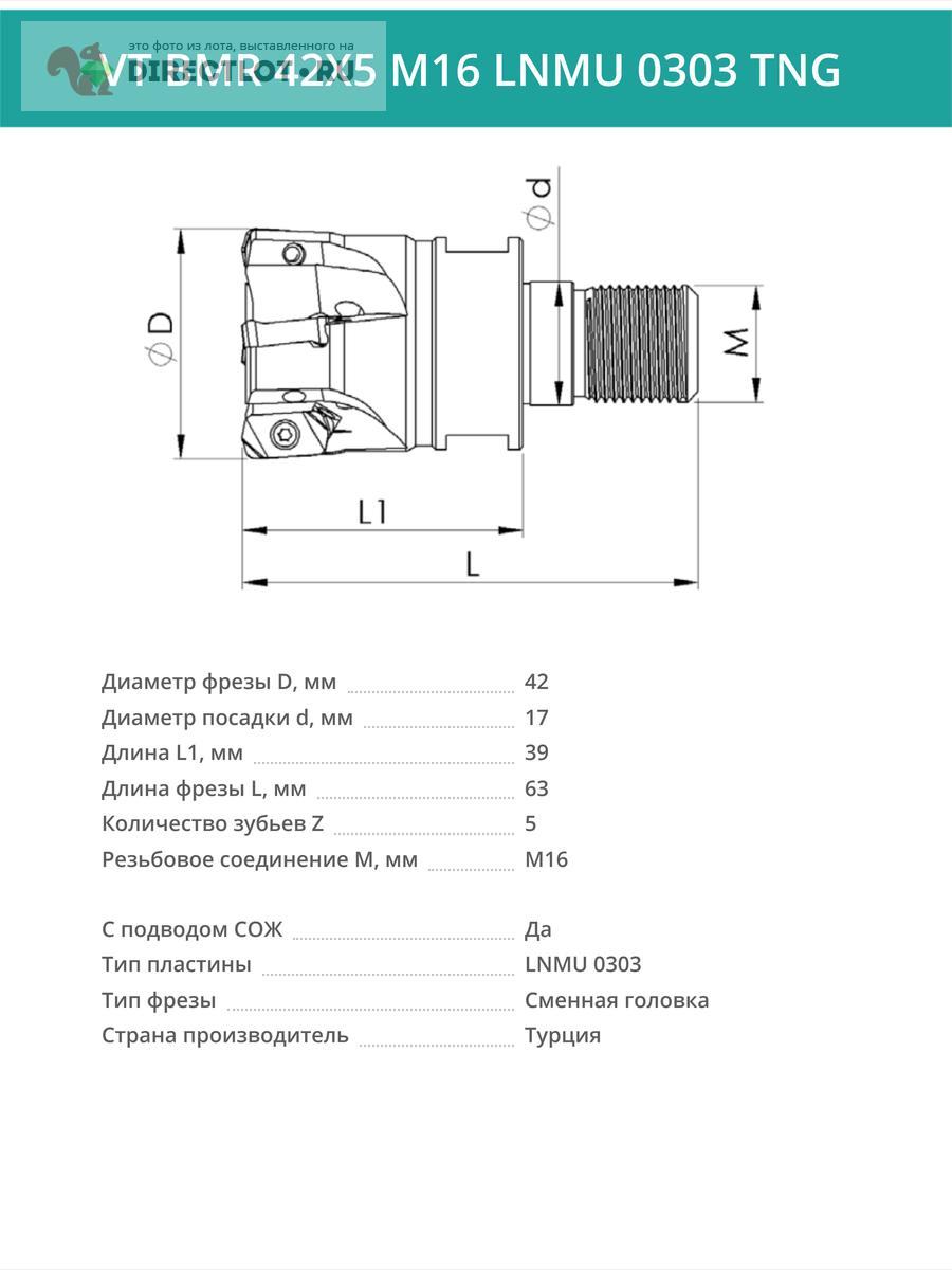 Маркировка: VT BMR 42X5 M16 LNMU 0303 TNG (с СОЖ)