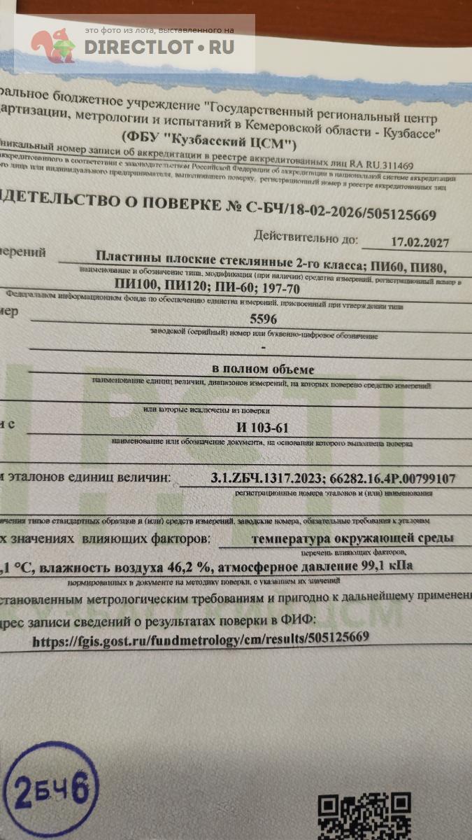 Код для вставки ссылки на эту страницу в сообщения на форумах: [url=https://directlot.ru/lot.php?id=1767059] Пластина стеклянная ПИ 60 нижняя. Свежая поверка от 17.02.2026. купить, объявление на DIRECTLOT.RU [/url]
