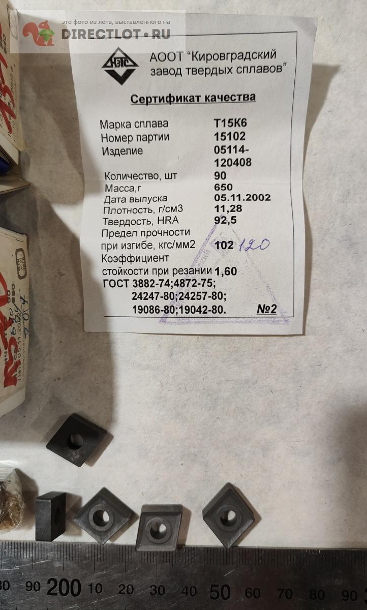 Код для вставки ссылки на эту страницу в сообщения на форумах: [url=https://directlot.ru/lot.php?id=1771475] Пластина твердосплавная ромб 05114-120408 Т15К6 купить, объявление на DIRECTLOT.RU [/url]
