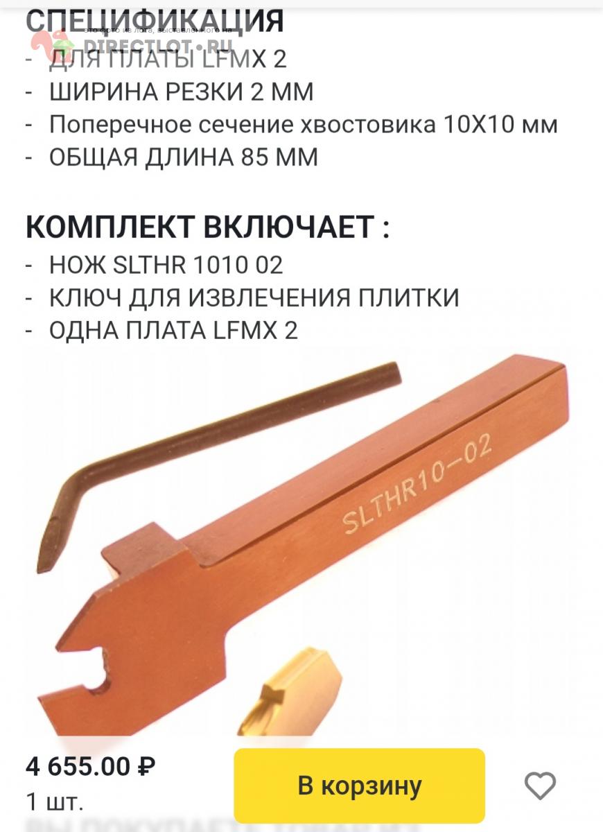 Код для вставки ссылки на эту страницу в сообщения на форумах: [url=https://directlot.ru/lot.php?id=1772987] Державка отрезная 10 на 10мм под пластины LFMX купить, объявление на DIRECTLOT.RU [/url]