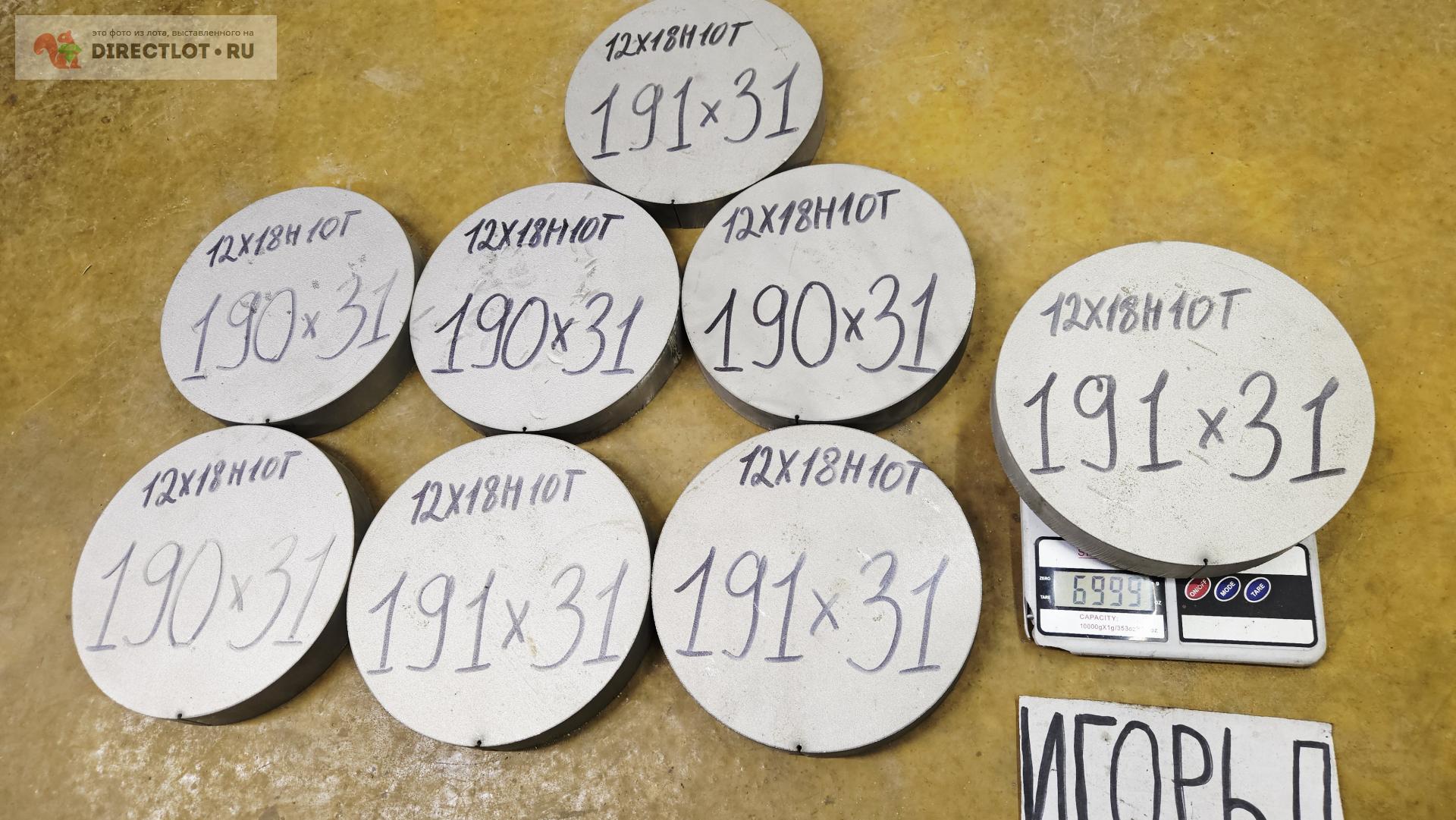 Нержавейка 12Х18Н10Т круг ( заготовка, блинчик ) ф 190-191мм * 31мм купитьЛот 1773264, размещён в продажу: