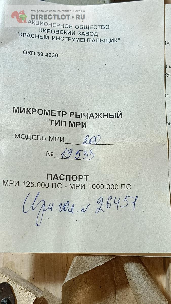 Код для вставки ссылки на эту страницу в сообщения на форумах: [url=https://directlot.ru/lot.php?id=1774582] Микрометр рычажной тип МРИ 200 (150-200) купить, объявление на DIRECTLOT.RU [/url]