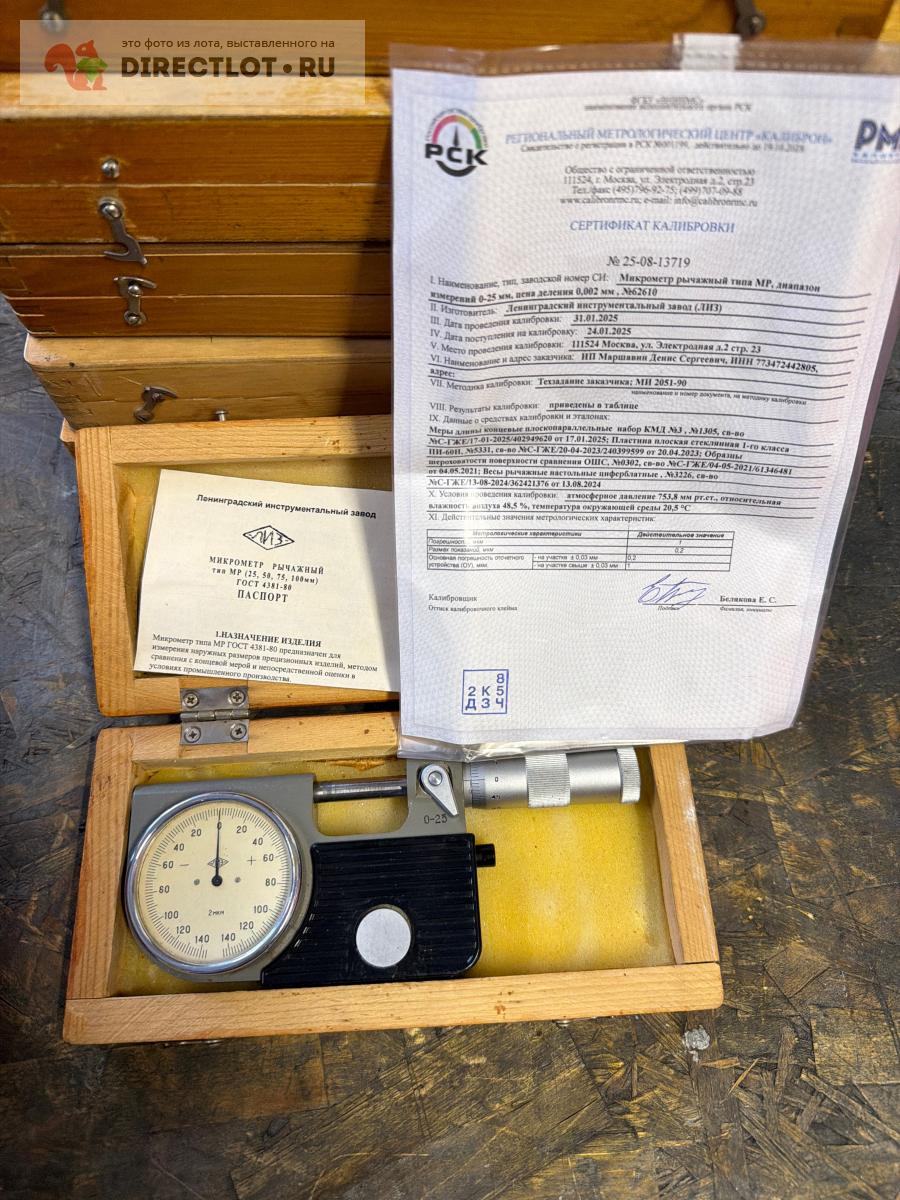 Код для вставки ссылки на эту страницу в сообщения на форумах: [url=https://directlot.ru/lot.php?id=1776046] Микрометр рычажная мр 25 0,002 с калибровкой лиз купить, объявление на DIRECTLOT.RU [/url]