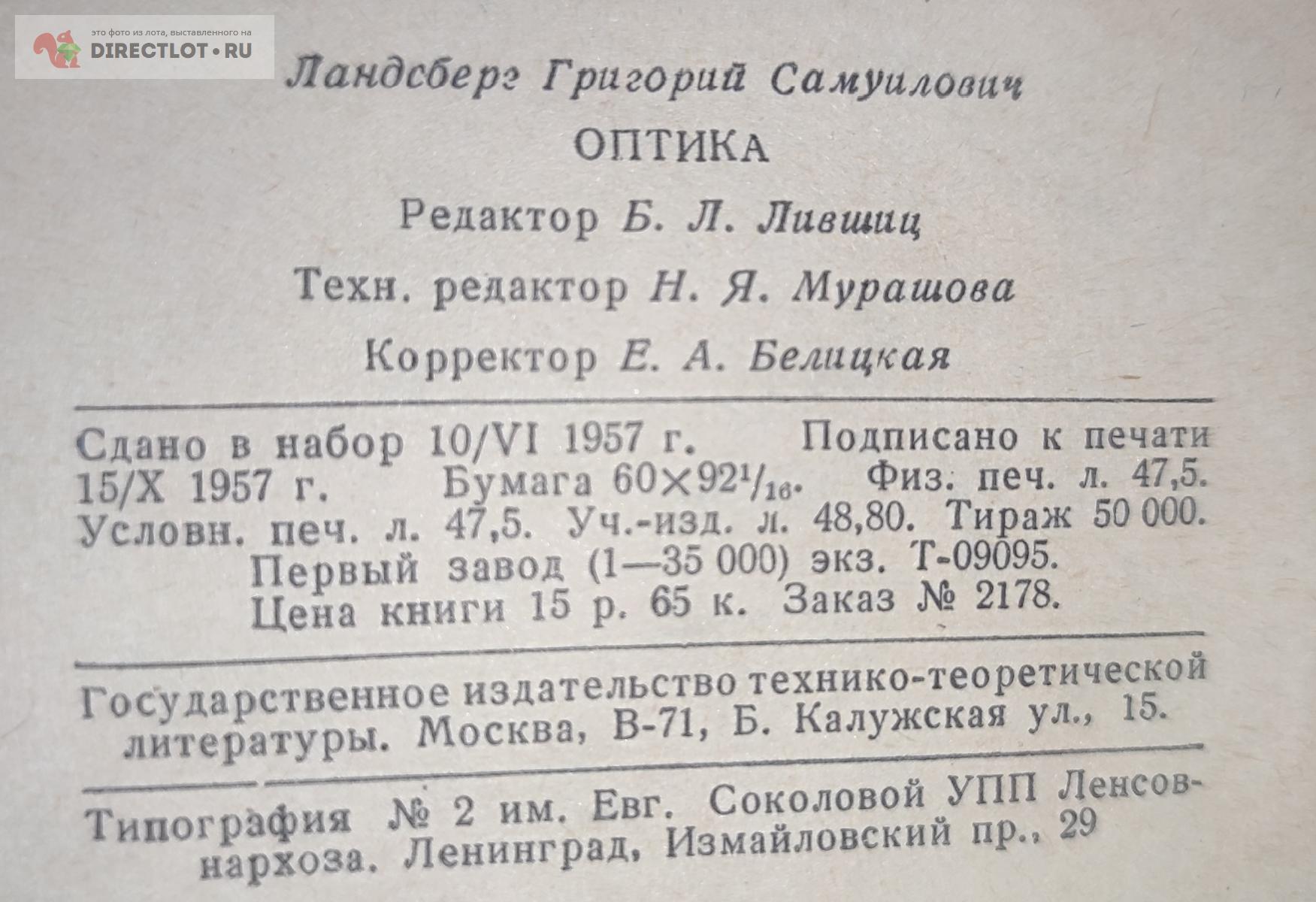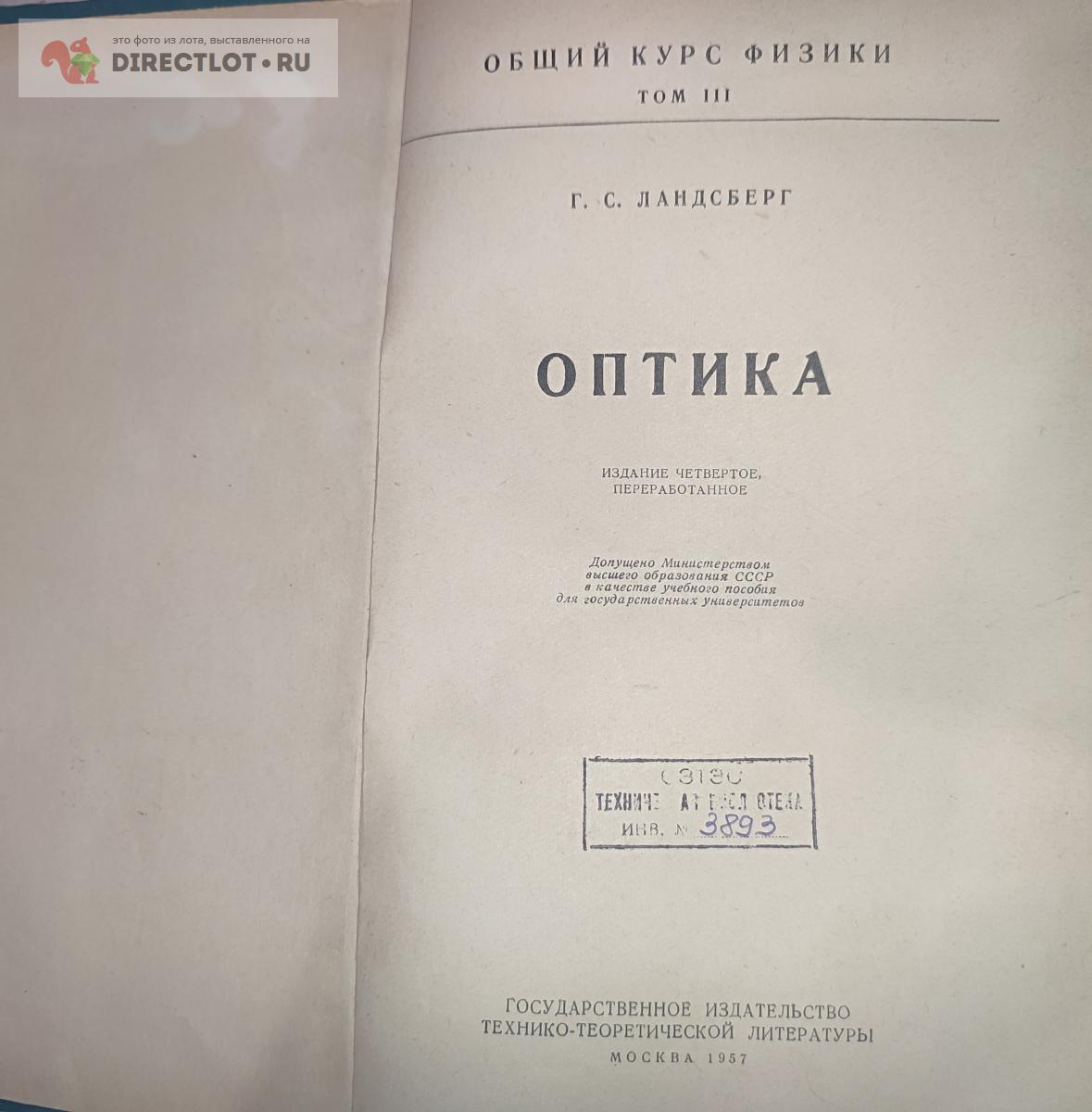 Код для вставки ссылки на эту страницу в сообщения на форумах: [url=https://directlot.ru/lot.php?id=1784153] Ландсберг Г.С. Оптика. 1957 г. купить, объявление на DIRECTLOT.RU [/url]